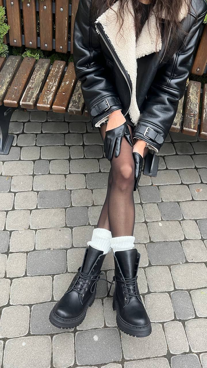 Шкіряні ботильони на хутрі Diana BT153W (чорний)