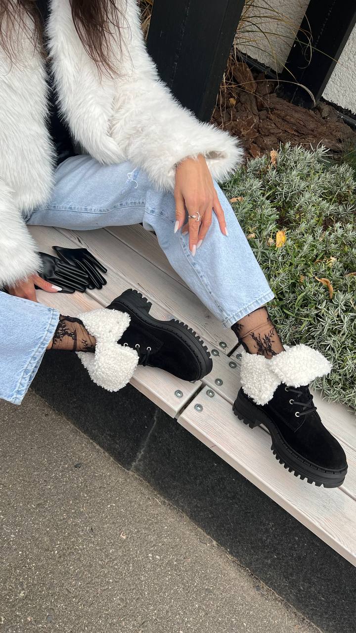 Замшеві ботильони на хутрі Diana BT153W (чорний)