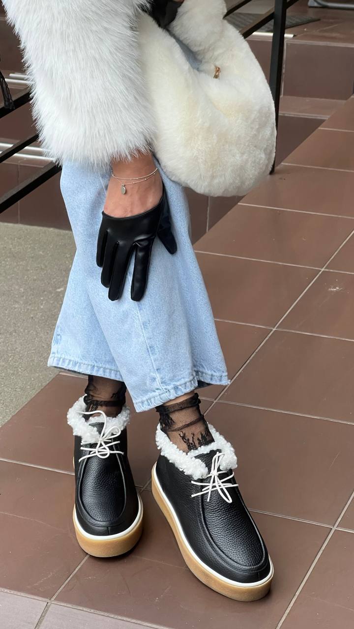 Шкіряні напівчеревики на хутрі Tiffany BT154W (чорний)