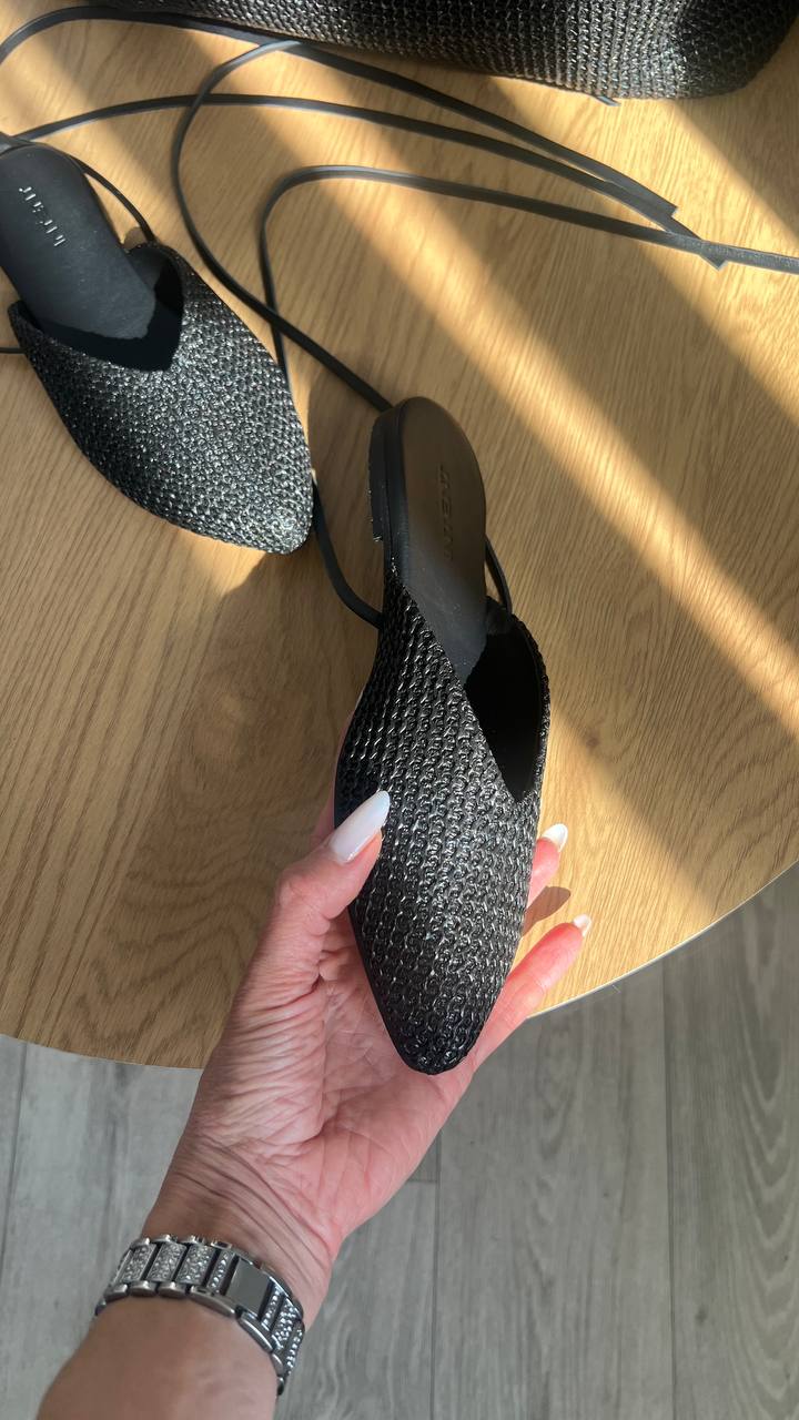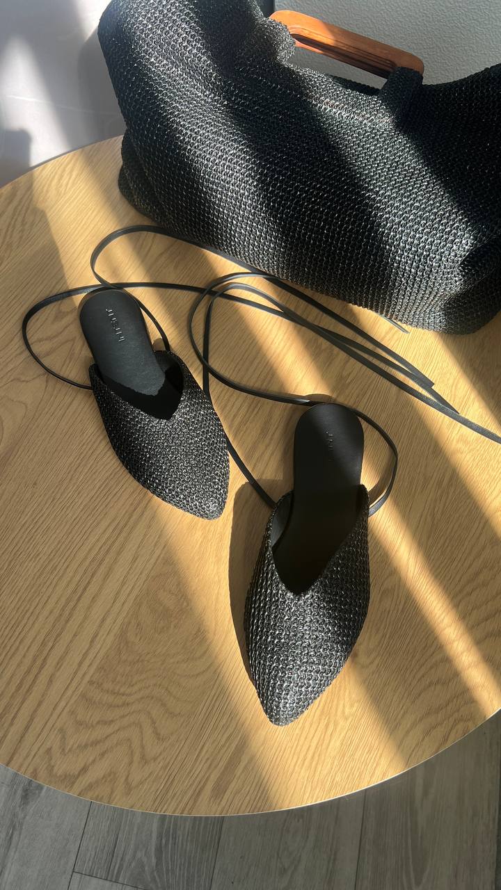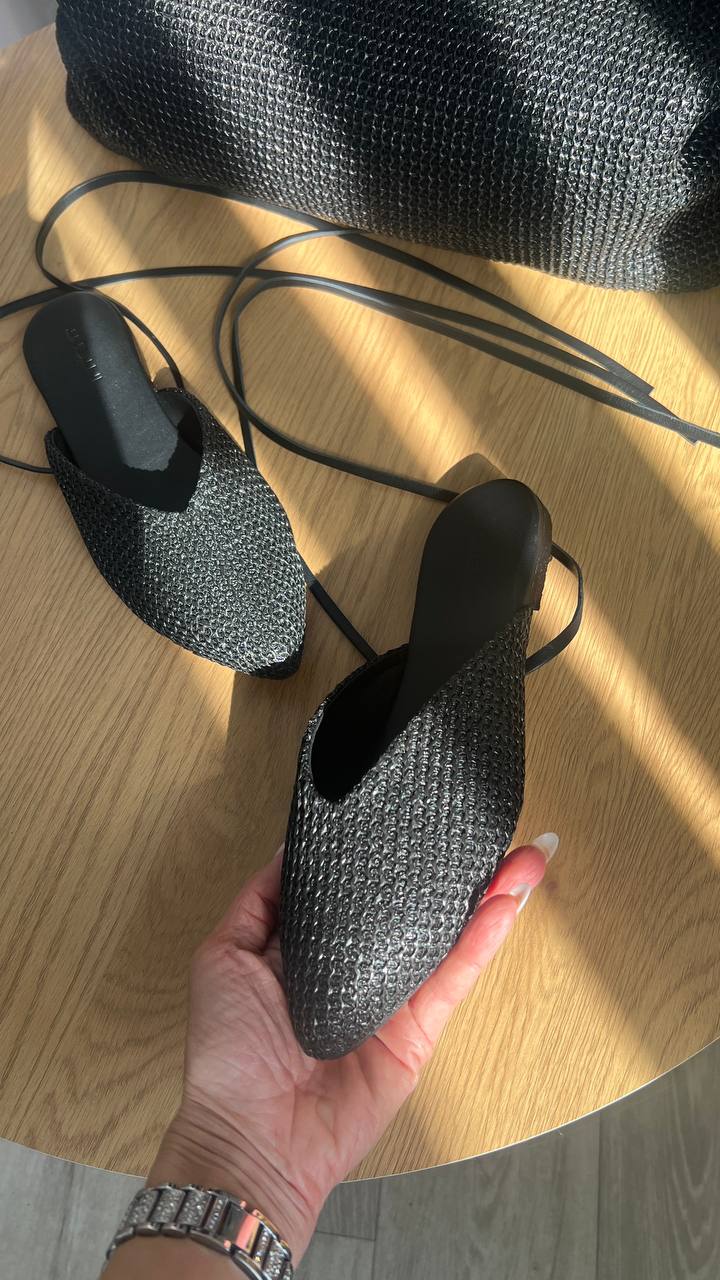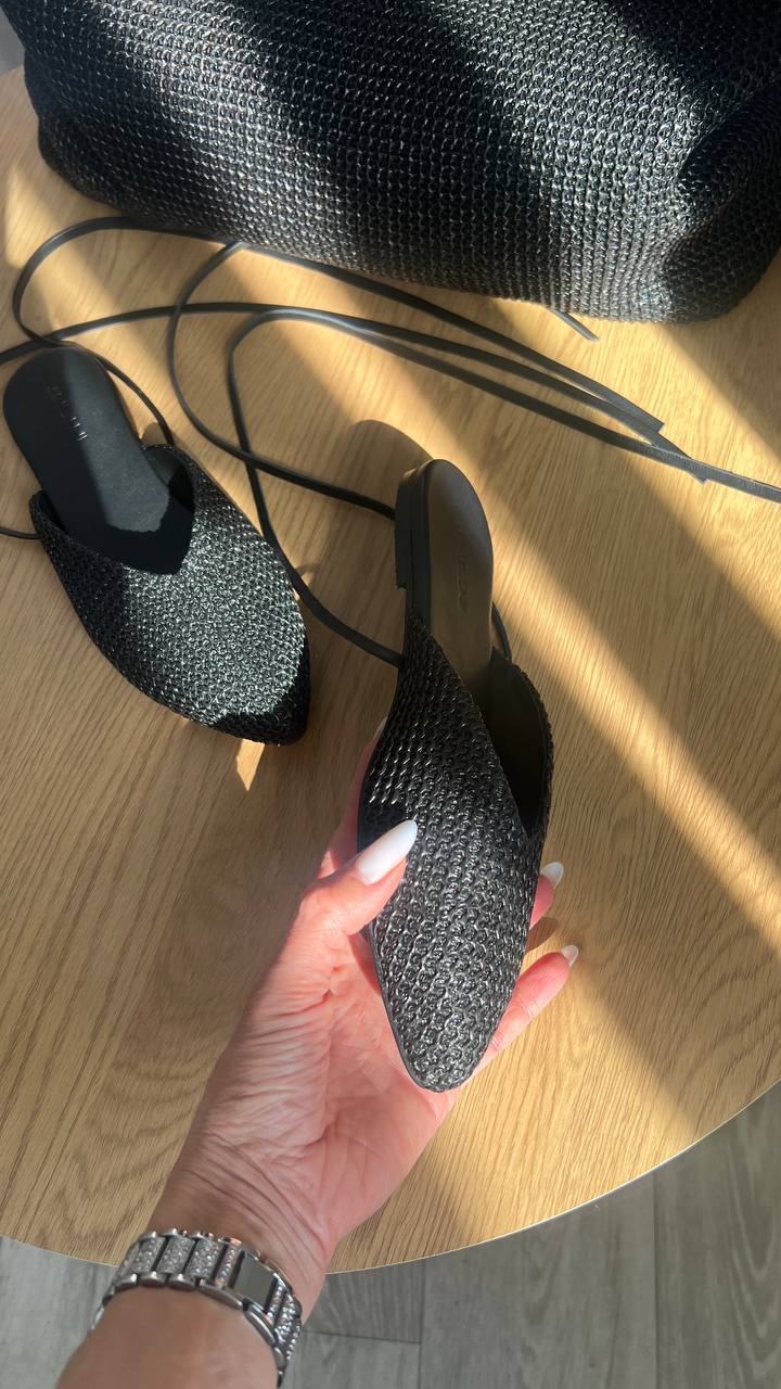 Solomia – оригінальні мюлі-слінгбеки на завʼязках. Виконані з натуральної шкіри в комбінації зі спеціальною взуттєвою сіточкою преміальної якості. Легесенькі та дуже мʼякі.