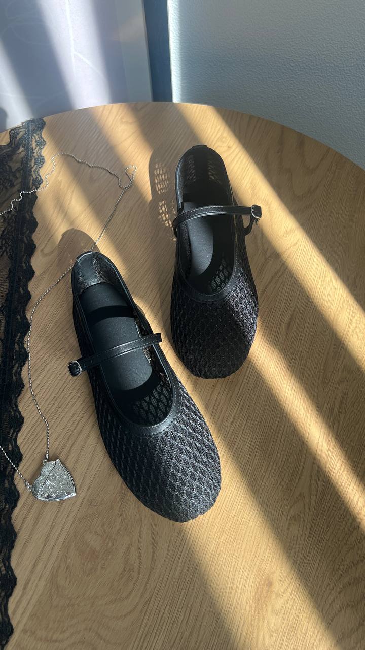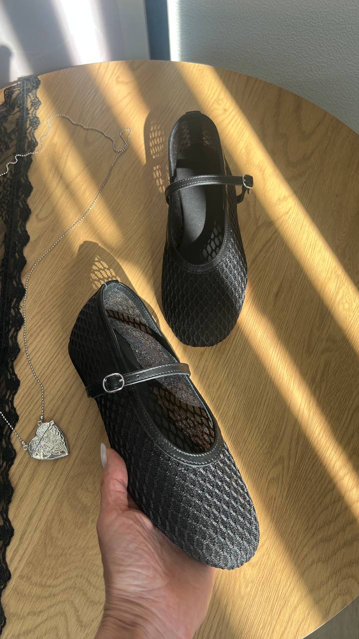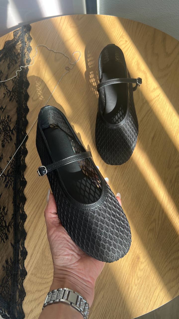 Шкіряні балетки з крупною сіточкою Lolita BL007S2 (чорний)