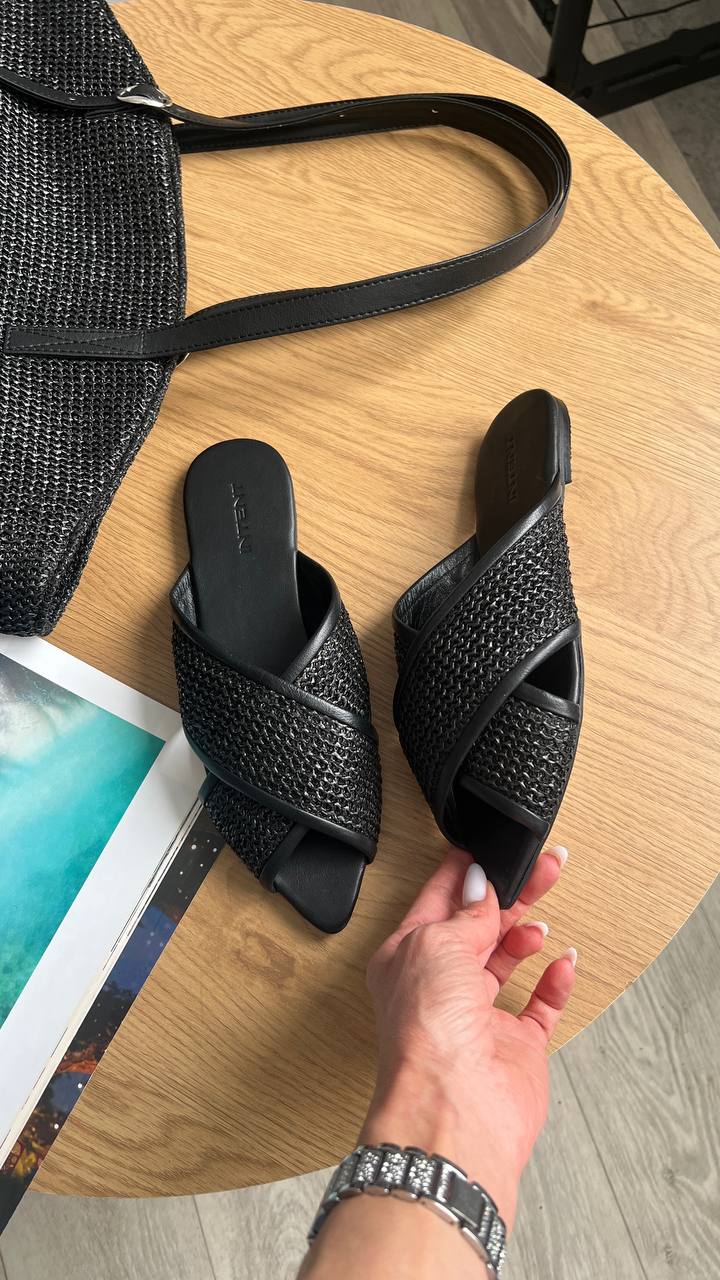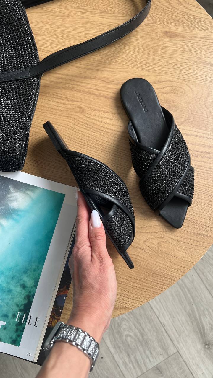 Malena – оригінальні мюлі-шльопанці. Дуже легенькі та мʼякі. Виконані з натуральної шкіри в комбінацій зі спеціальною взуттєвою сіточкою.