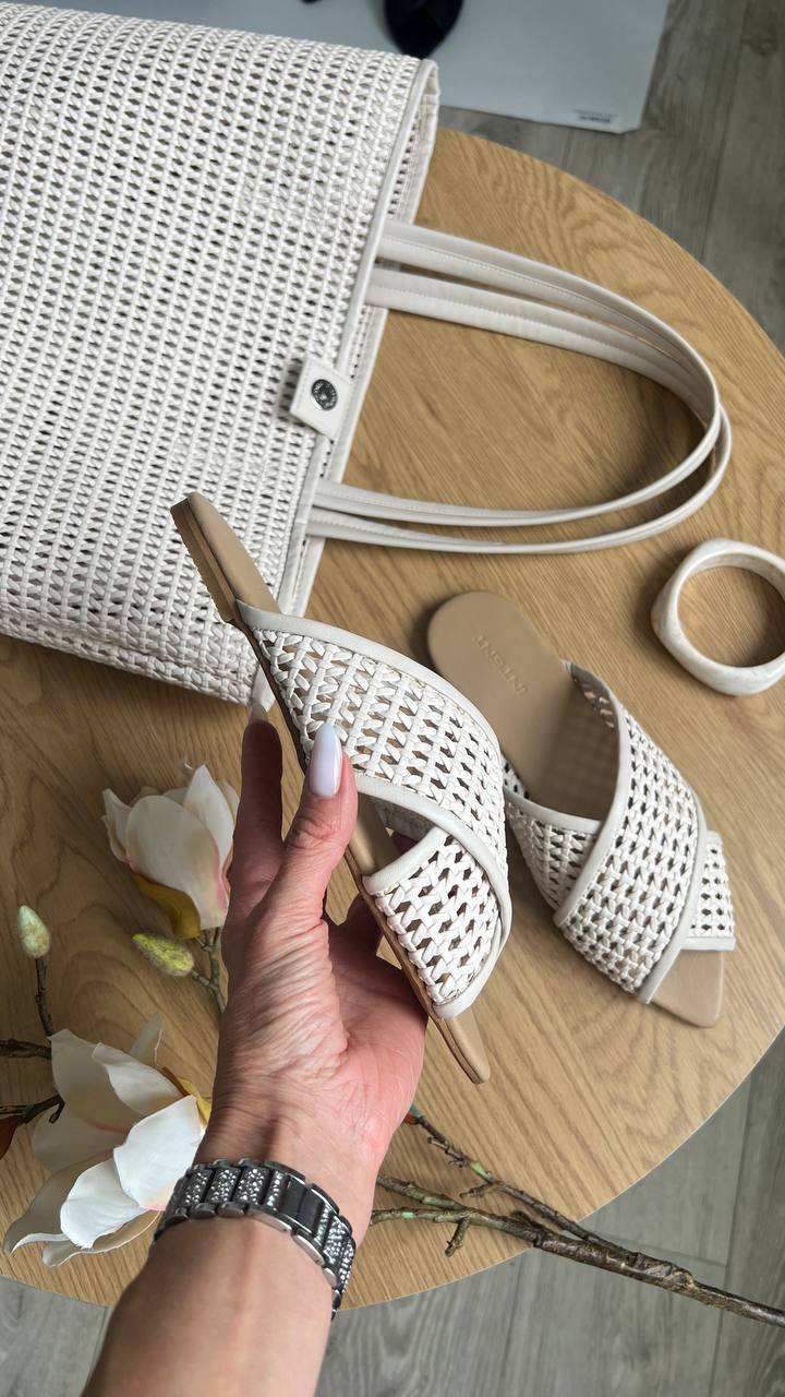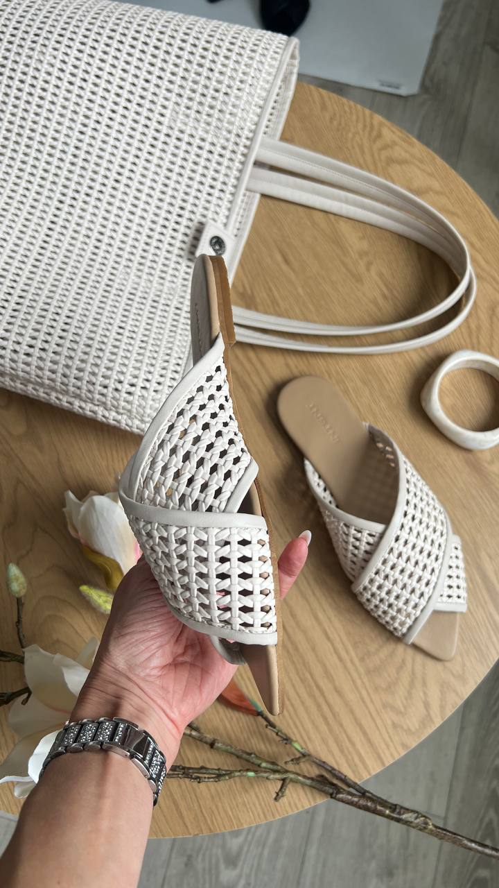 Malena – оригінальні мюлі-шльопанці. Виконані з натуральної шкіри в комбінацій зі спеціальною взуттєвою сіточкою. Підошва дуже легка, прекрасно згинається) Устілка також виконана з натурального шкіряного підкладу, всередині оздоблена латексом для мʼякості та комфорту Ваших ніжок)