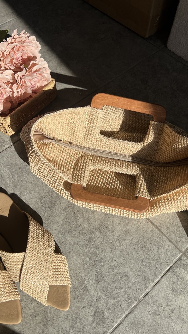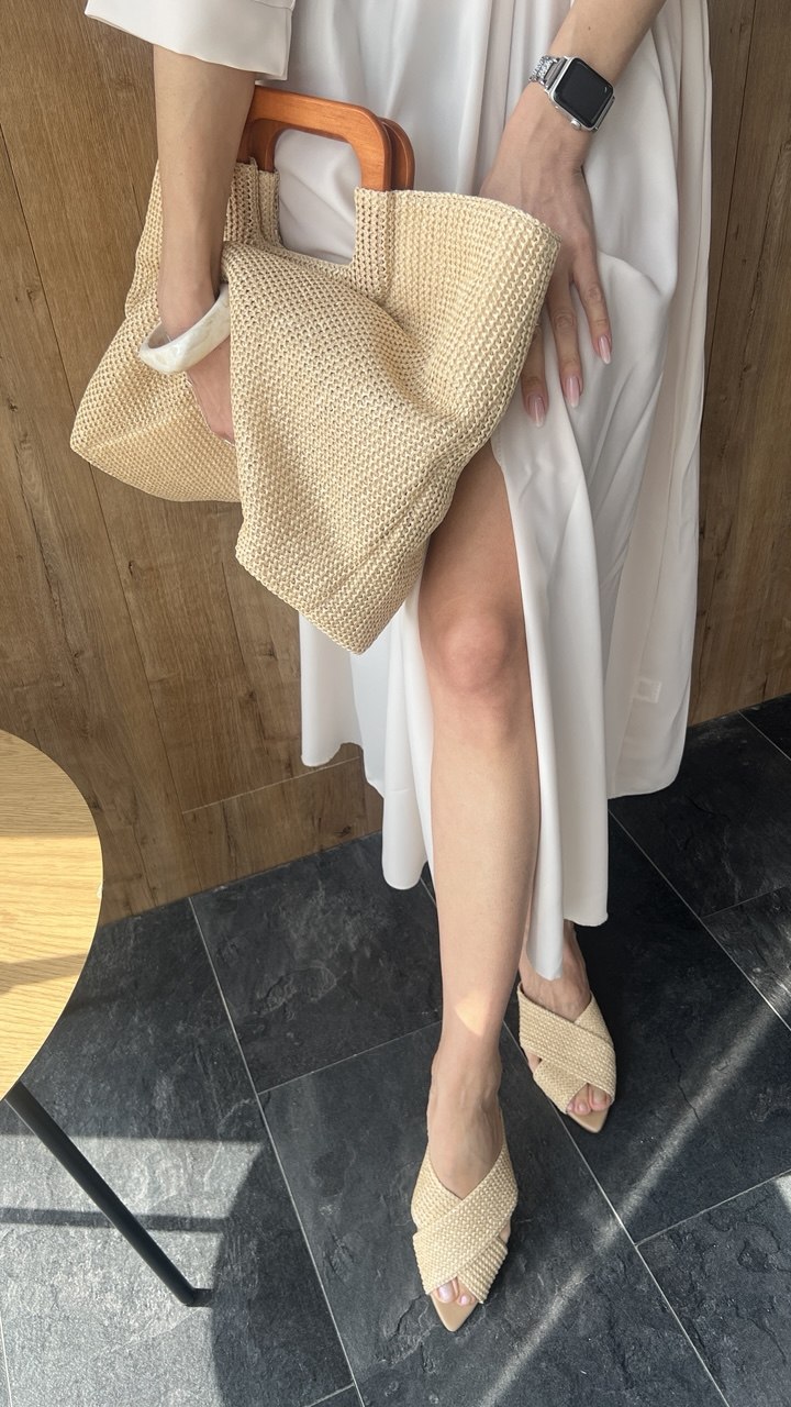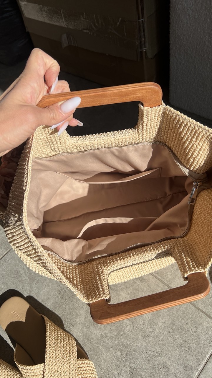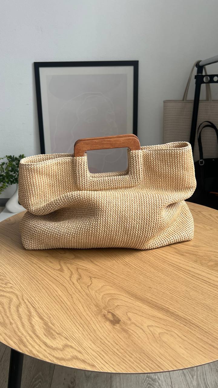 Bella – стильна, мʼяка та дуже легенька сумочка. Виконана з спеціальної галантерейної сіточки з деревʼяними ручками.