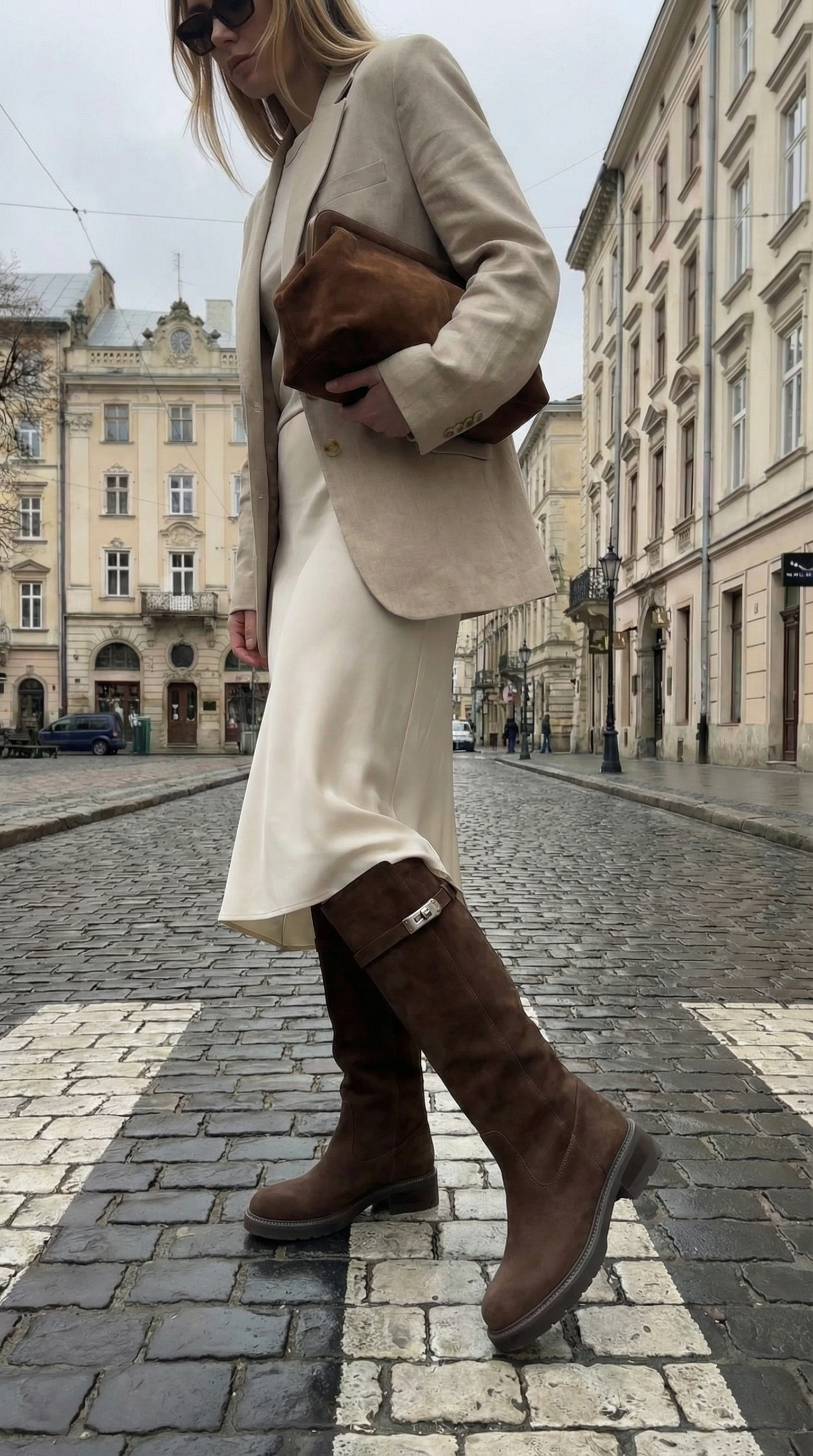 Висота чобітка 42 см, не враховуючи підошви. Підошва стримана, без зайвих протекторів, дуже легенька.