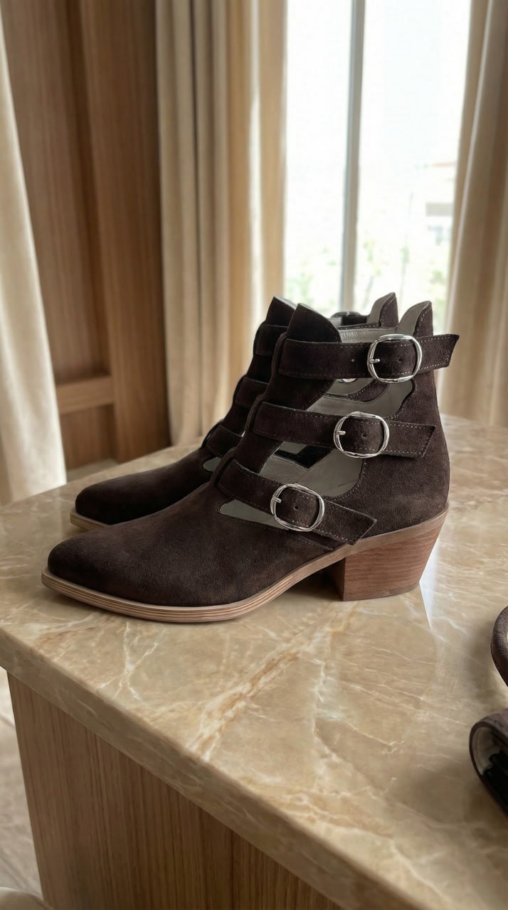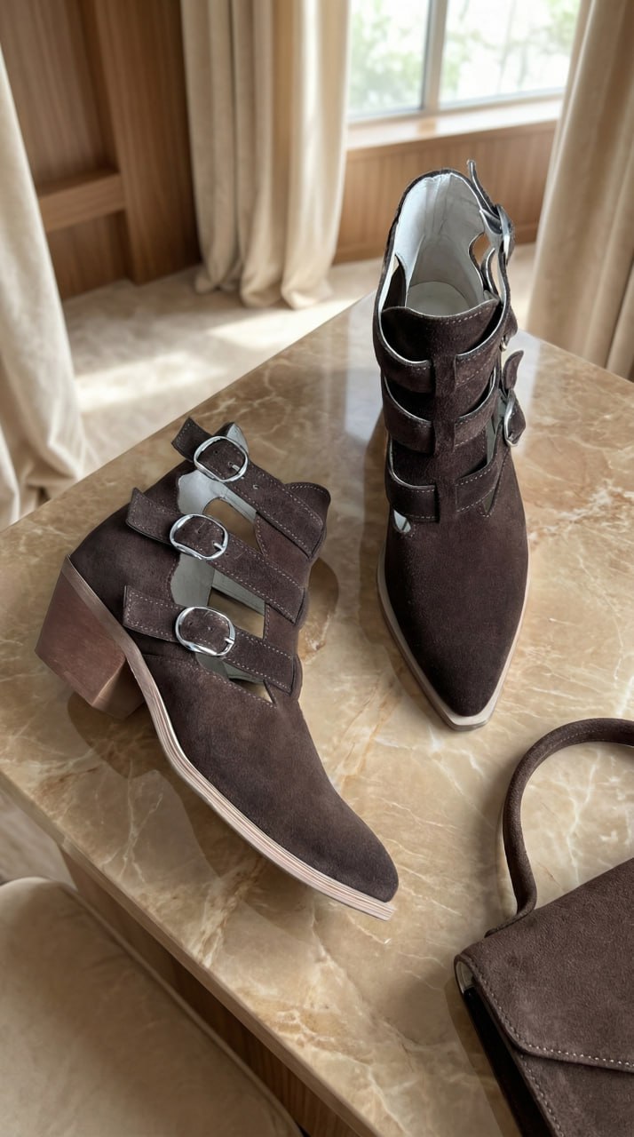 Ковбойки Bianca — дуже легенькі та мʼякі. Виконані повністю з натуральної замші, всередині повністю шкіряний підклад. Висота 13 см (не враховуючи підошви). Підборчик 5 см. Колодка дуже зручна, йде розмір в розмір, наявність підбору майже не відчувається) Дуже зручно взувати завдяки резиночкам у пряжок.