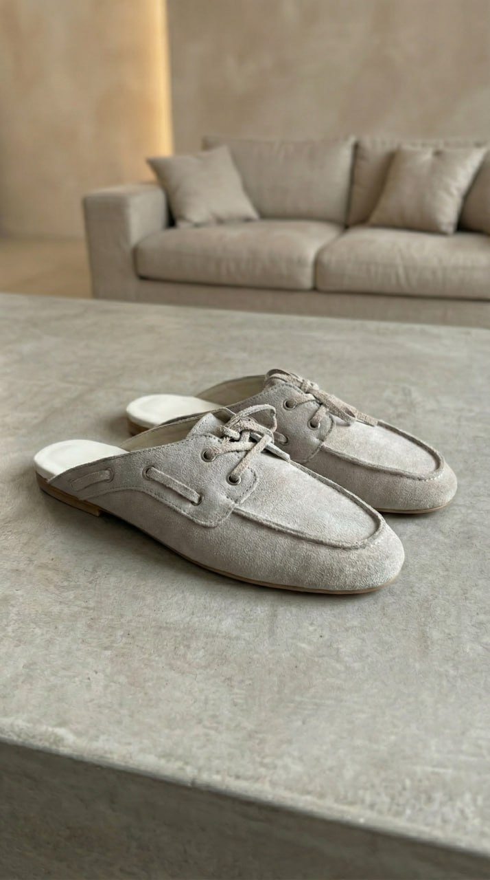 Bella – трендові мюлі-топсайдери з натуральної замші.