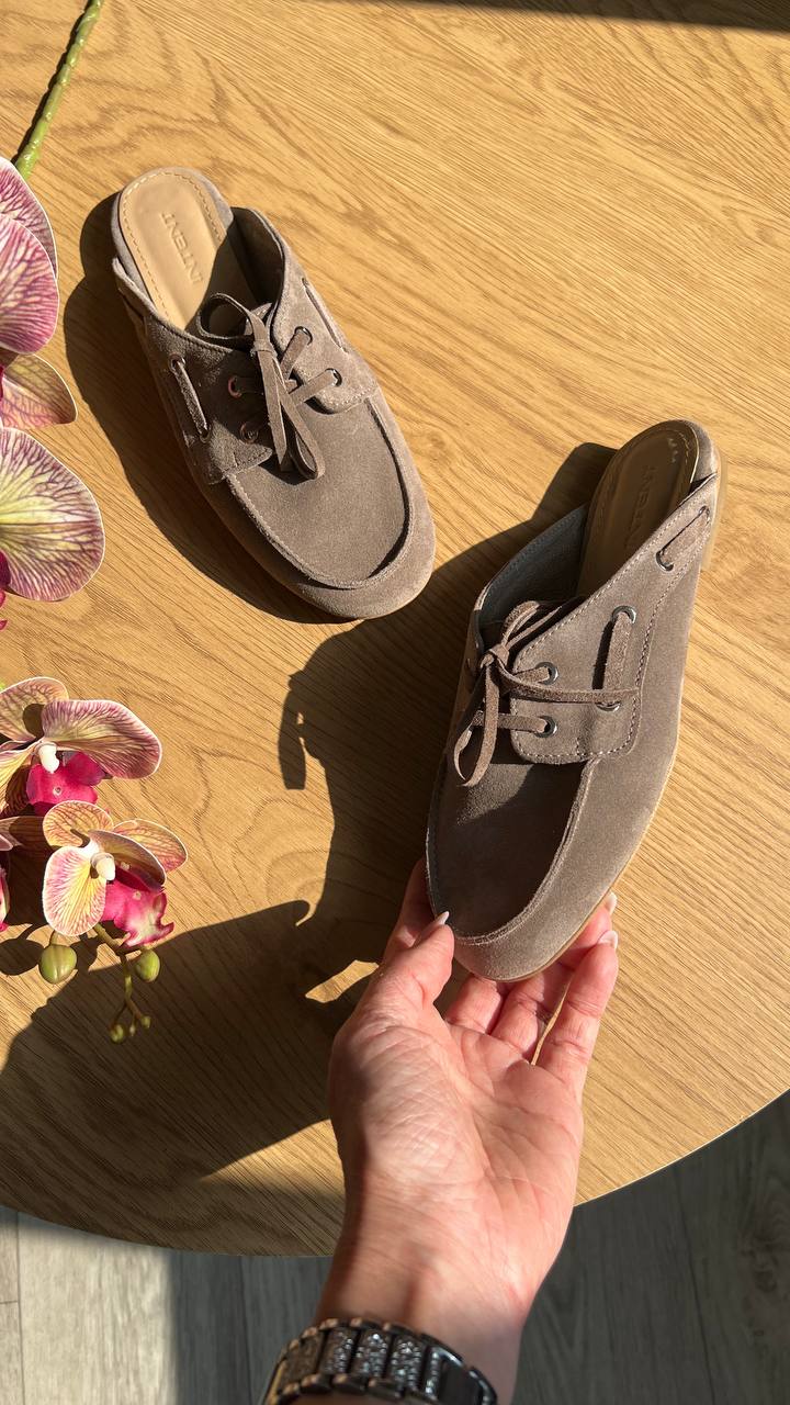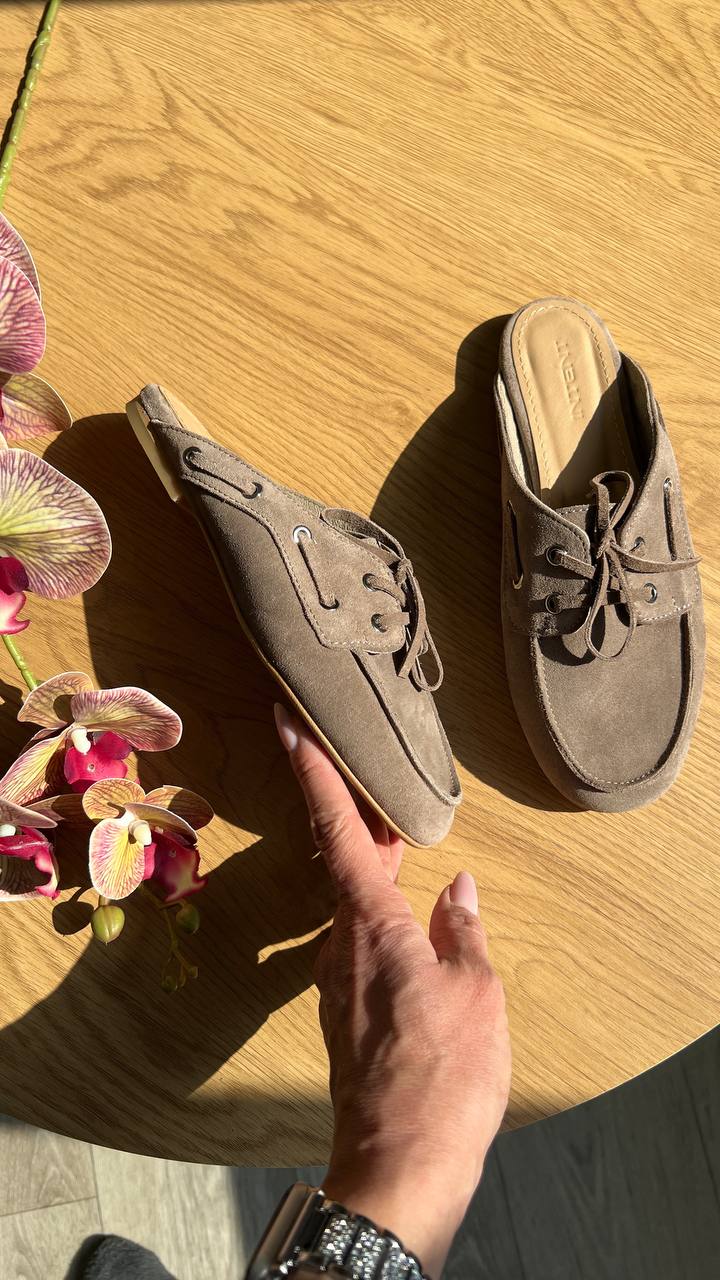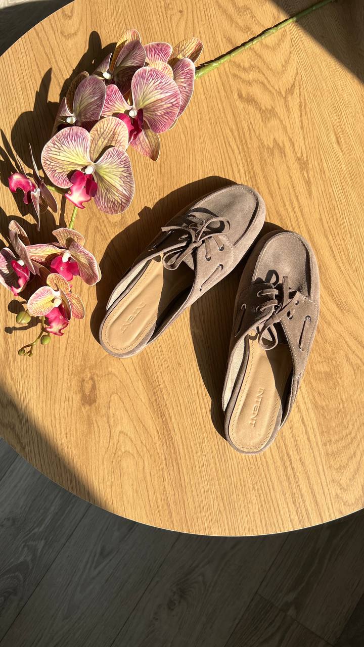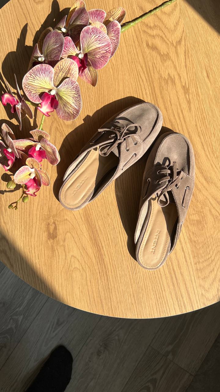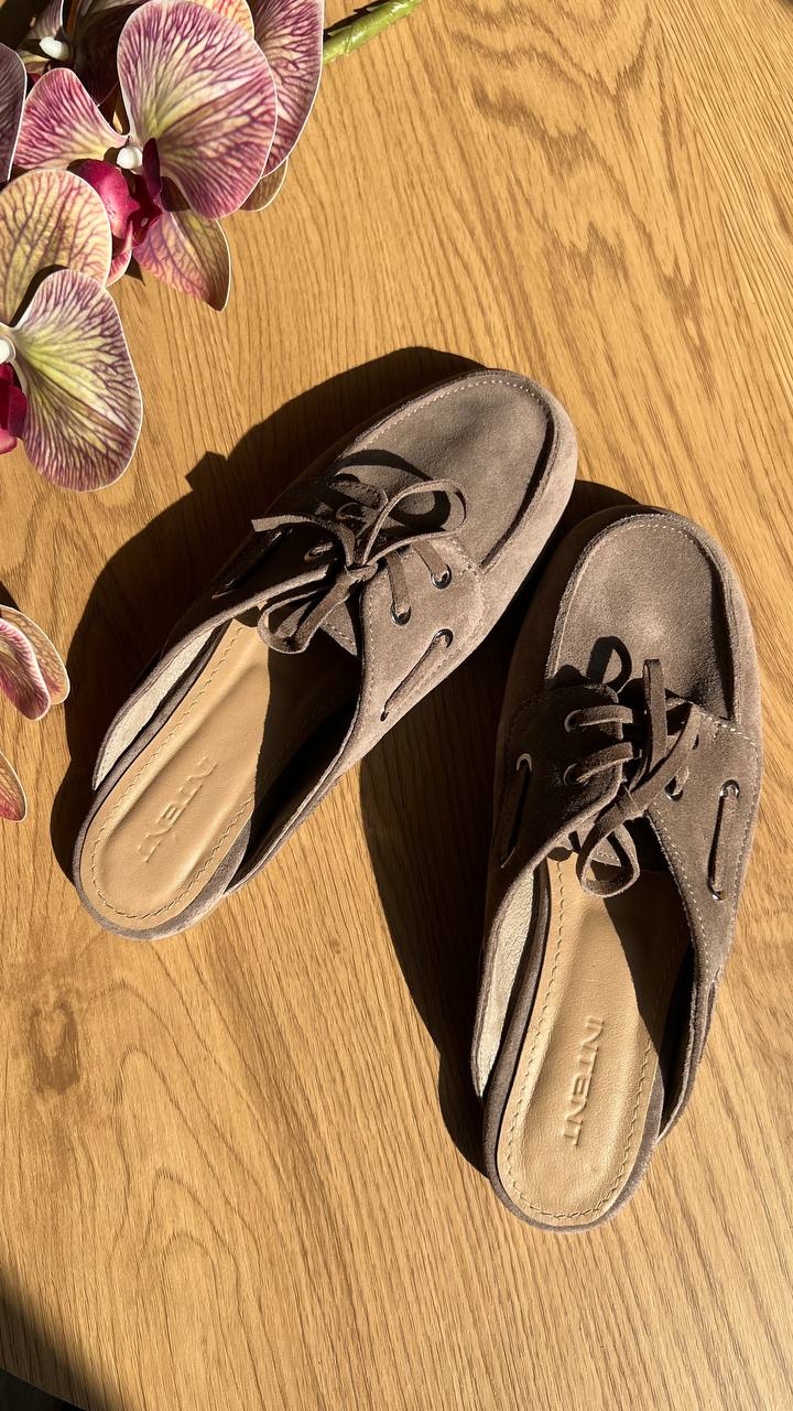 Kira – трендові мюлі-топсайдери з натуральної замші.