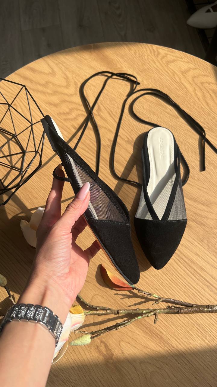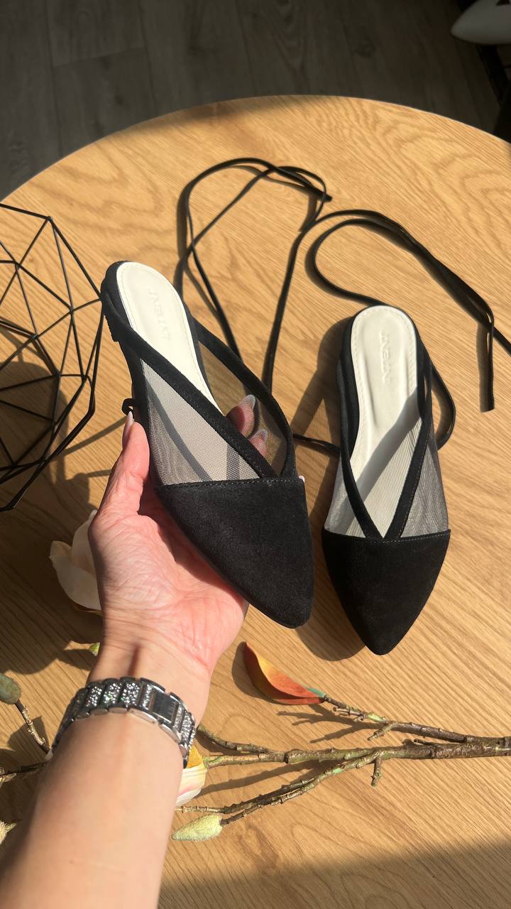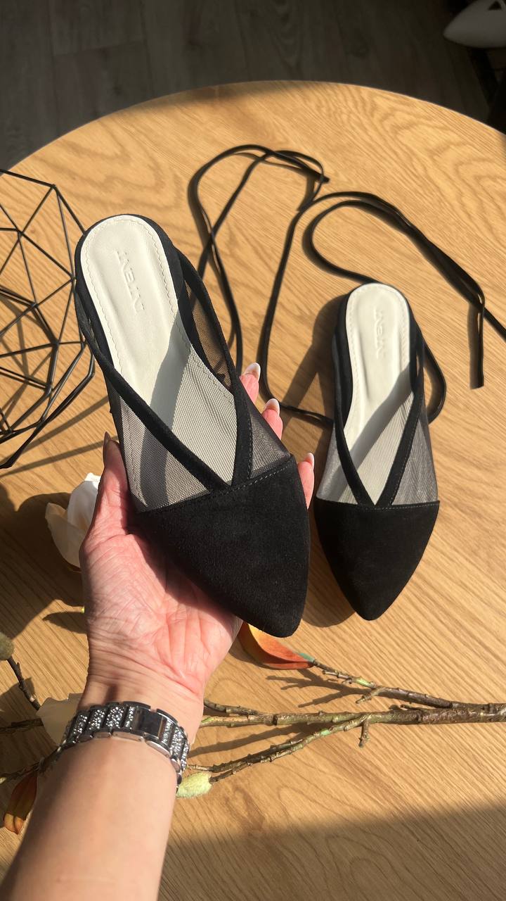 Замшеві мюлі з сіточкою Kiss M110 (чорний)