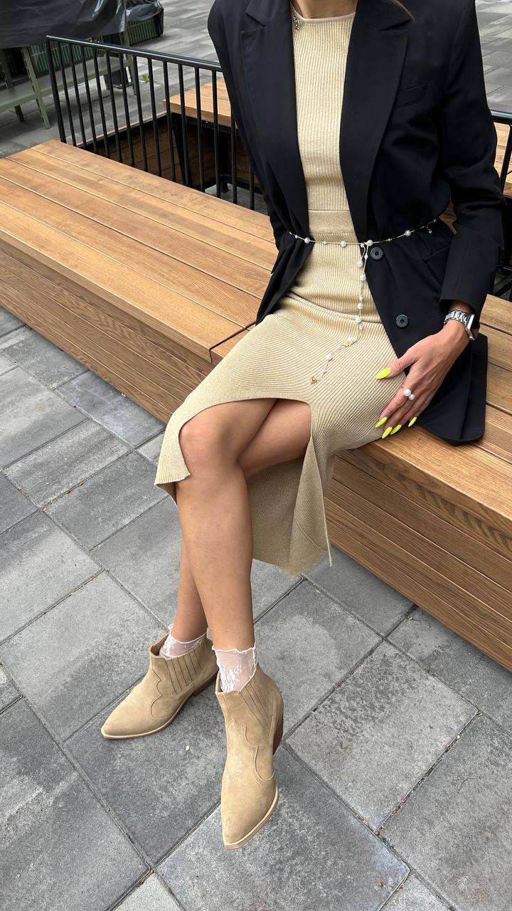 Ковбойки-челсі Bacardi — ботильйони з натуральної замші, висота 13.5 см (не враховуючи підошви). Підборчик 5 см. Колодка дуже зручна, йде розмір в розмір, наявність підбори майже не відчувається) Наявність резинок за бокам спрощує експлуатацію.