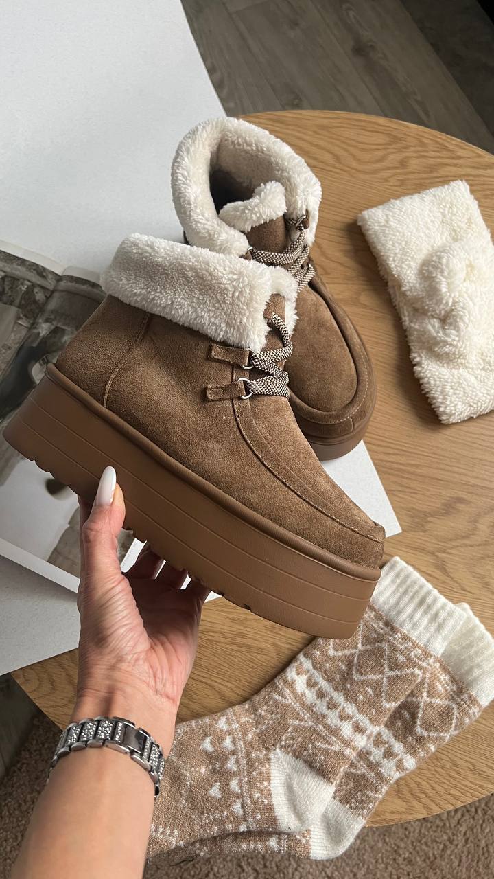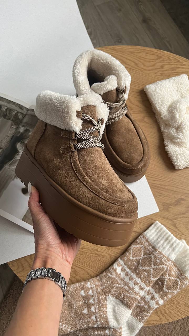 Archi – уггі на шнурівці, теплесенькі та дуже мʼякі. Виконані з натуральної замші. Всередині утеплені хутром.